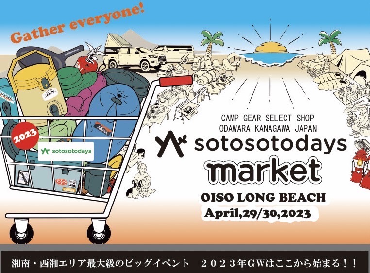 SOTOSOTODAYS MARKETにアウトドアショップCampoo!登場! 湘南・西湘エリア最大級のビッグイベント開催 神奈川県小田原市のアウトドアギア専門店・SOTOSOTODAYSさんが主催する2DAYS イベント「SOTOSOTODAYS MARKET」。 【開催期間】 2023年4月29日(土)10:00~17:00 2023年4月30日(日) 9:00~15:00 【場所】 大磯ロングビーチ第一駐車場 このビッグイベントに、今回はテントファクトリーをお取り扱いいただいているアウトドアショップCampoo!さんも参加します! いろいろとアウトドアギアを販売…その中にはテントファクトリーのお買い得品もあるようですよ⁈ 入場チケットなどくわしい情報は「SOTOSOTODAYS MARKET」公式サイトをチェックしてみてくださいね! SOTOSOTODAYS MARKET https://ssdm.official.ec/
