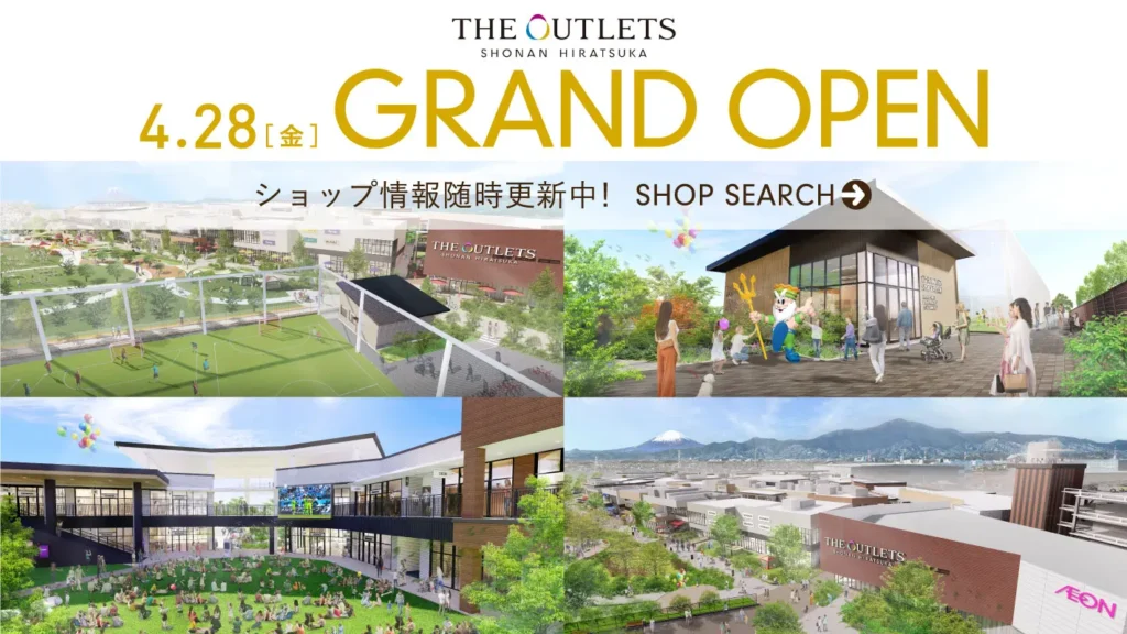 「THE OUTLET」関東初出店!湘南平塚に新しい商業施設が誕生! 地域と連携した大型商業施設「ジ・アウトレット」。 イオンモールの地域創生型商業施設「THE OUTLET SHONAN HIRATSUKA(ジ・アウトレット湘南平塚)」が4月28日(金)、神奈川県平塚市にオープンします。 「ジ・アウトレット」は地域との出会い、エンターテインメント、アウトレットという3つの価値を提供する商業施設。 平塚市やプロサッカークラブ・湘南ベルマーレなどとの産官学連携も! 地域にひらかれた「街のにぎわい拠点」を目指していきます。 Green Summitさんが出店します!つまりテントファクトリーがより身近に! 施設内ではアウトドア体験も充実。大手アウトドアブランドなどが関東最大級規模の出店をされます。 そして…私たちテントファクトリーをお取り扱いいただいているアウトドアセレクトショップ「Green Summit」さんが出店いたします! 湘南平塚周辺の皆様、そして近郊のアウトドアファンの皆様に、テントファクトリー商品をより身近に感じていただけるようになります!どうぞお楽しみに。 https://the-outlets-shonan-hiratsuka.aeonmall.com/