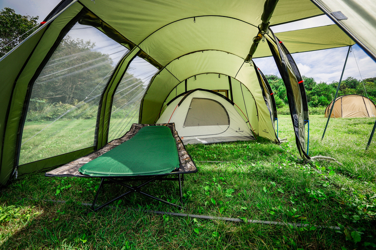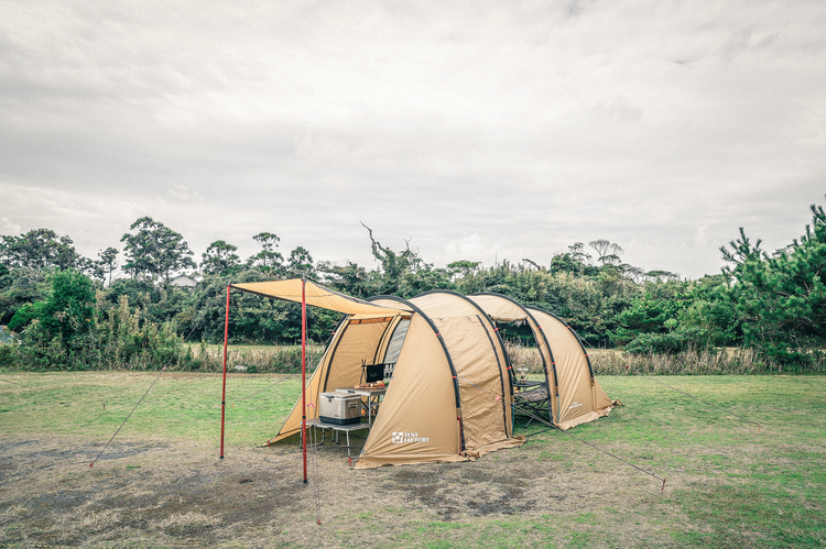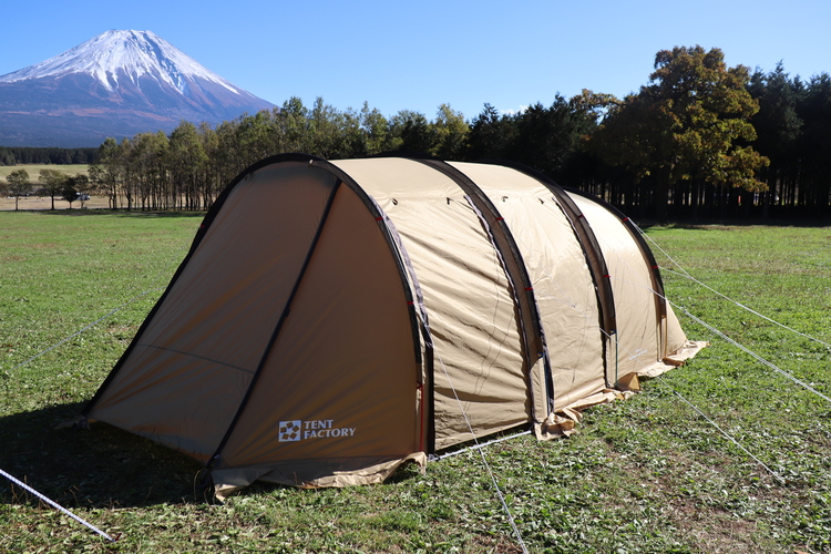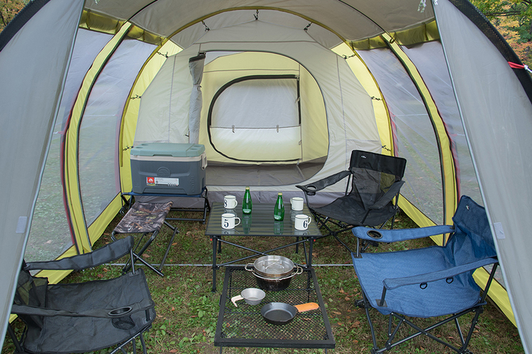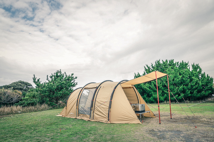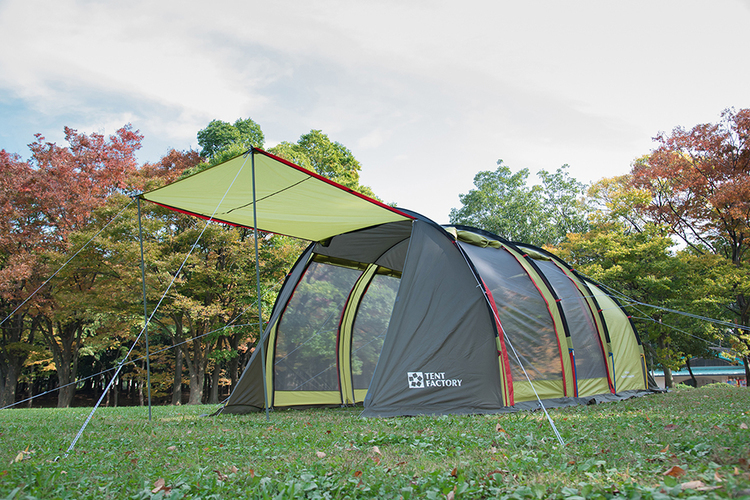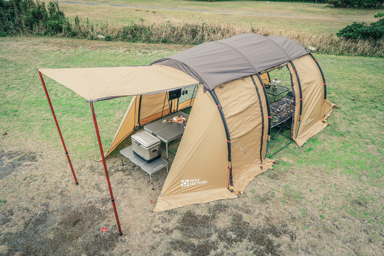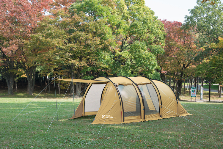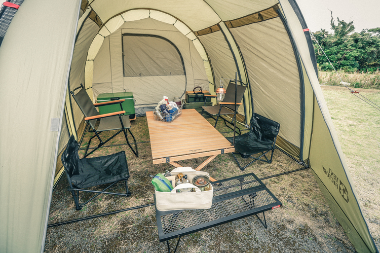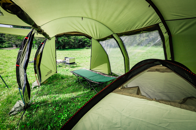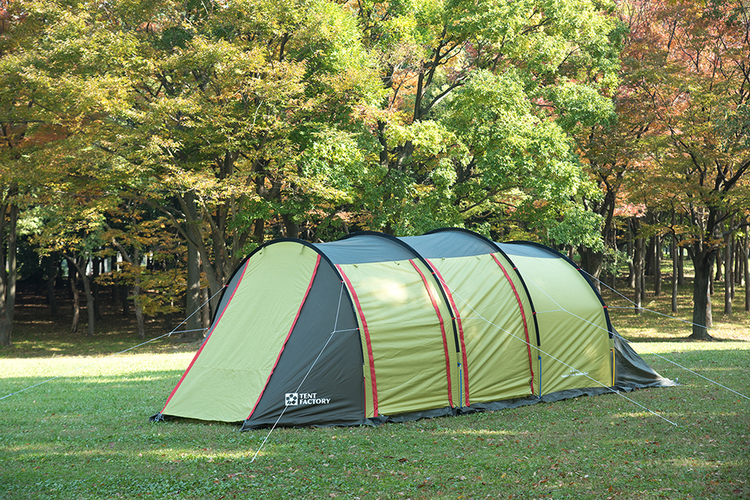 ・ポールをアーチ状にすることで居住性を広く確保できるトンネルタイプの2ルームテントです