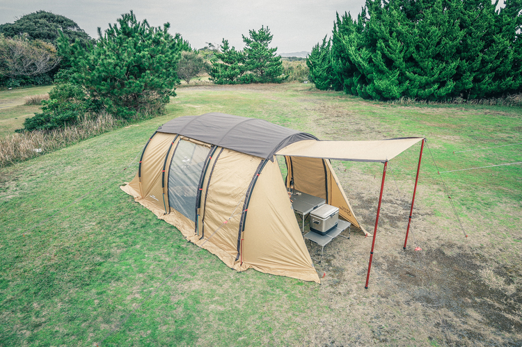 ・フォーシーズン トンネル2ルームテントLに装着できるUVカット仕様のトップルーフ。