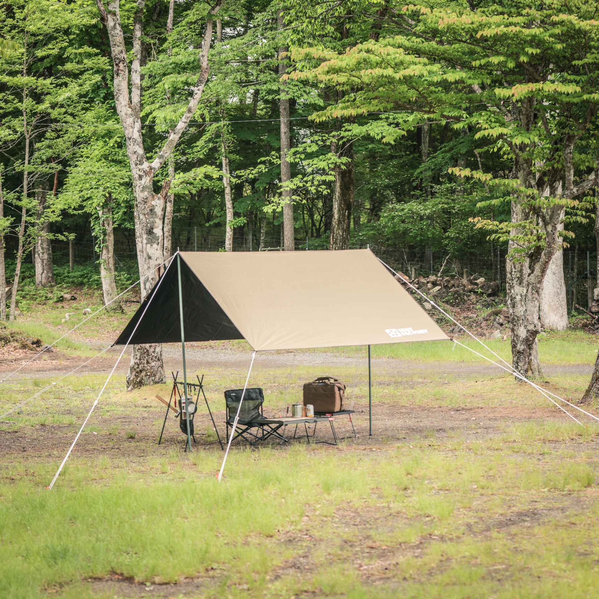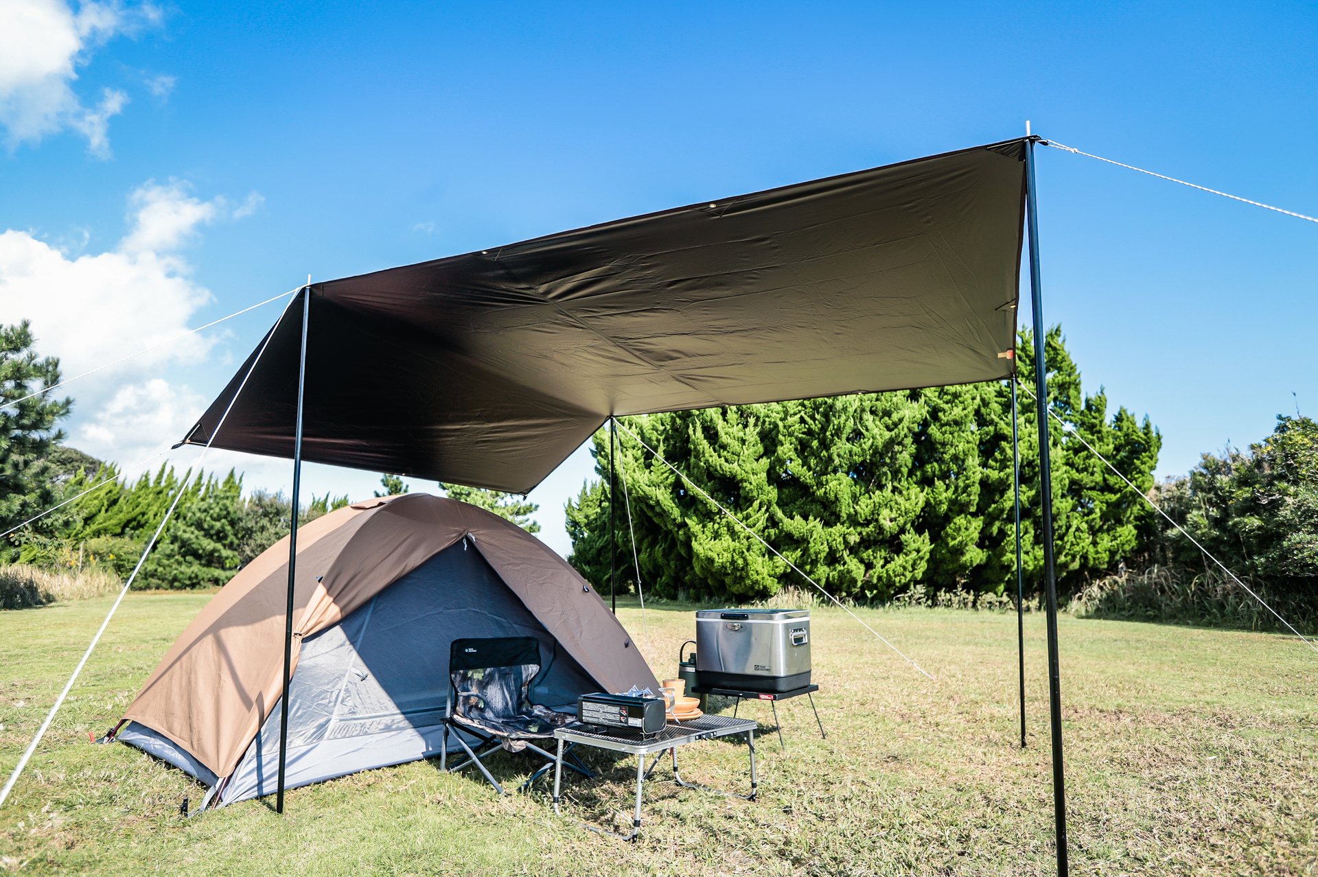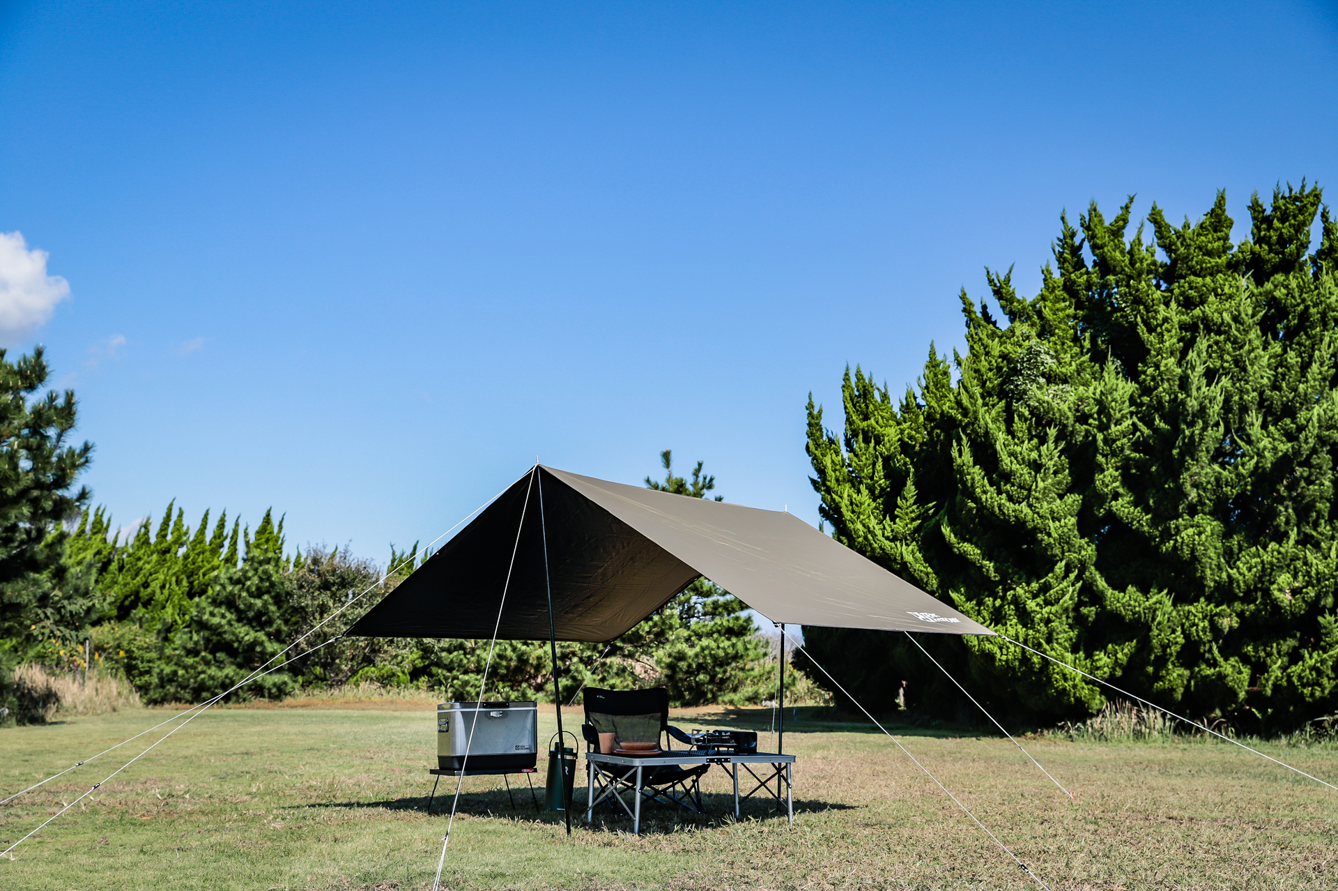 陽射しが強い日は、タープ下が涼しく、快適に寛げます