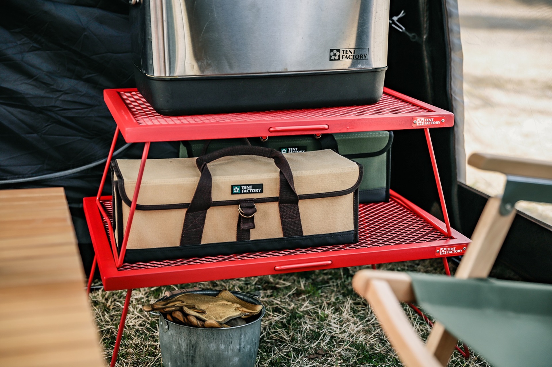 ハンマー・ペグやキャンプギア・食器の収納に!組立式のアウトドア用キャリーボックス カラーは3色展開 -
