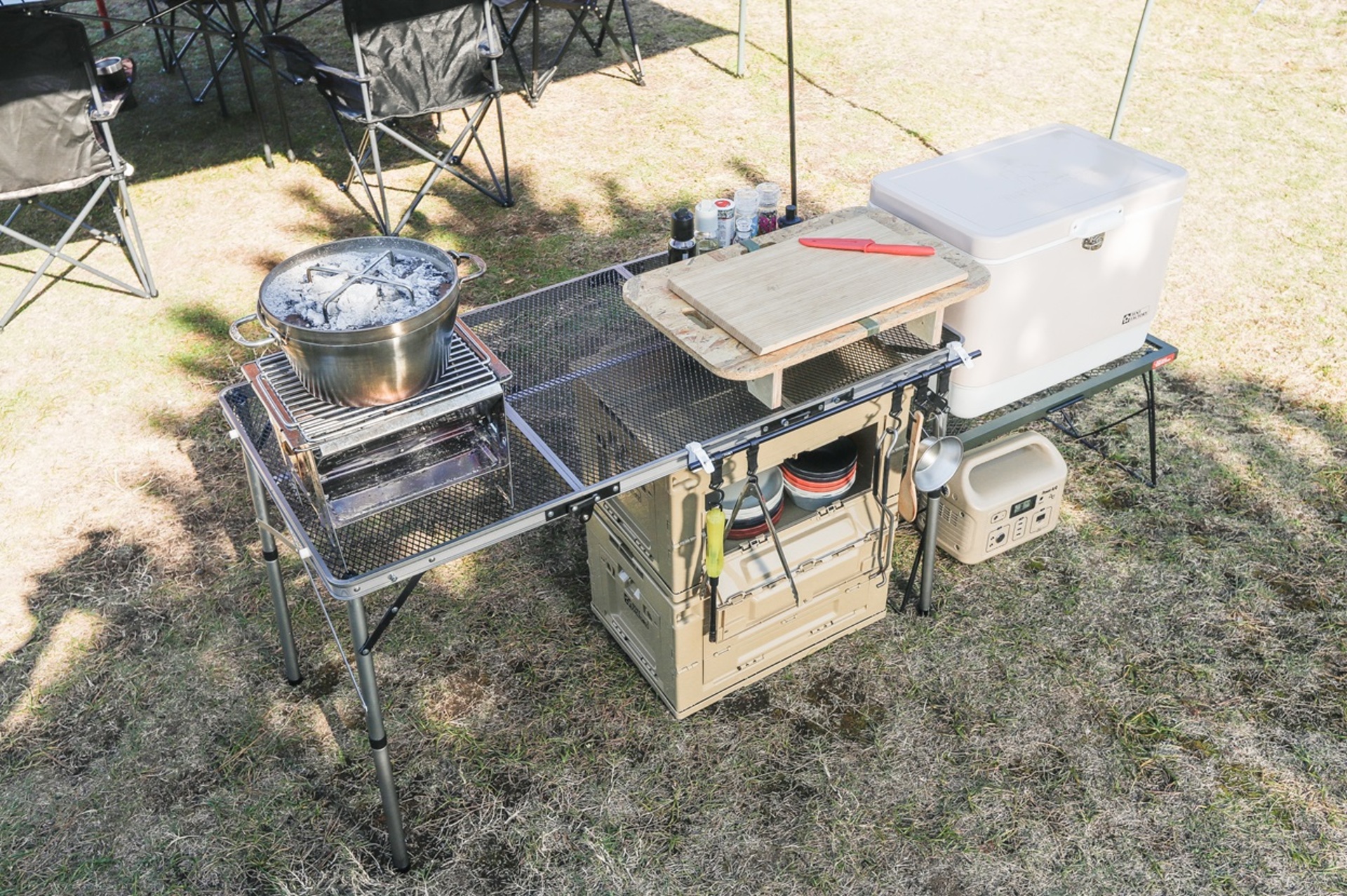天板がメッシュ仕様のアウトドアクッキングテーブル120/90 2サイズ -