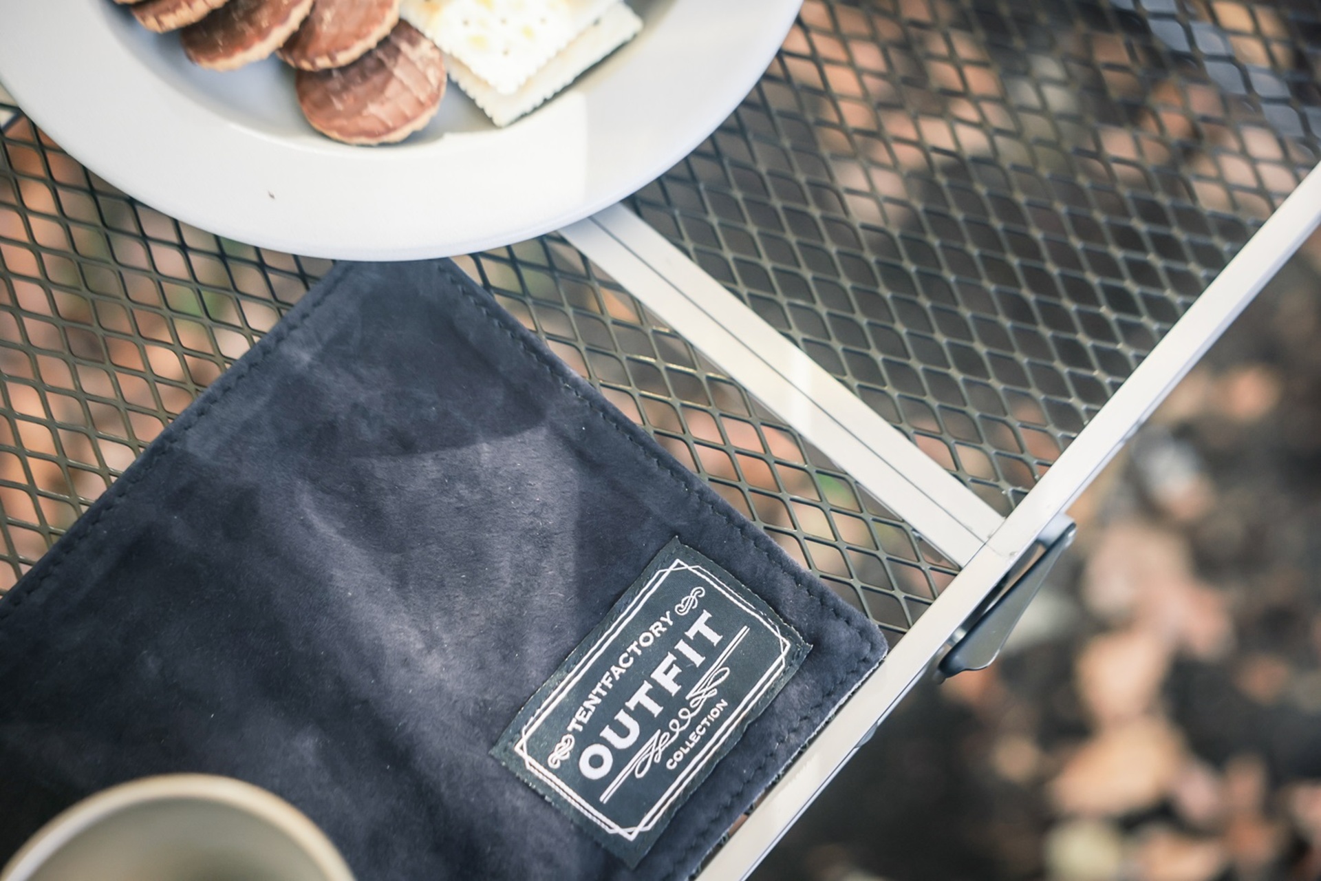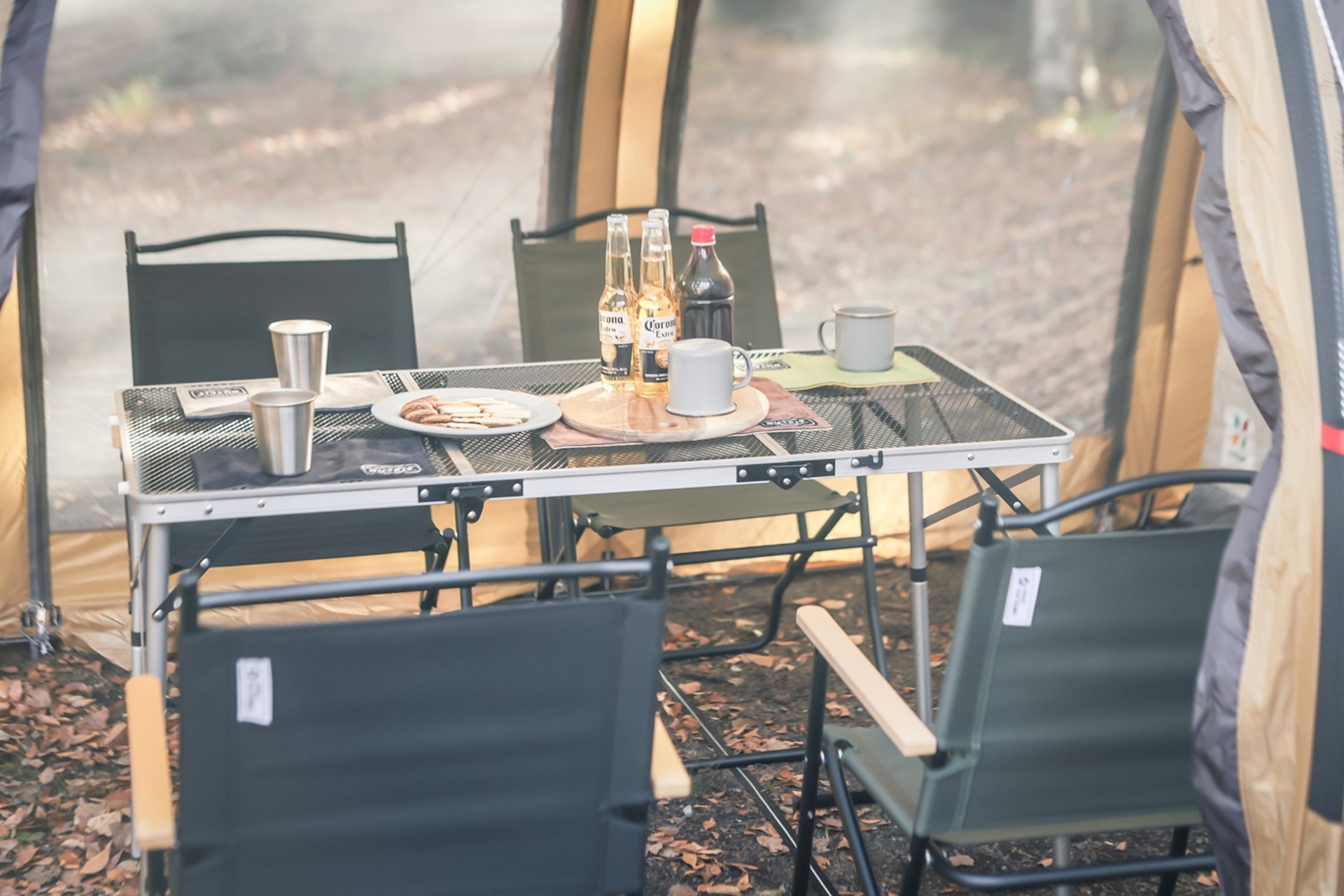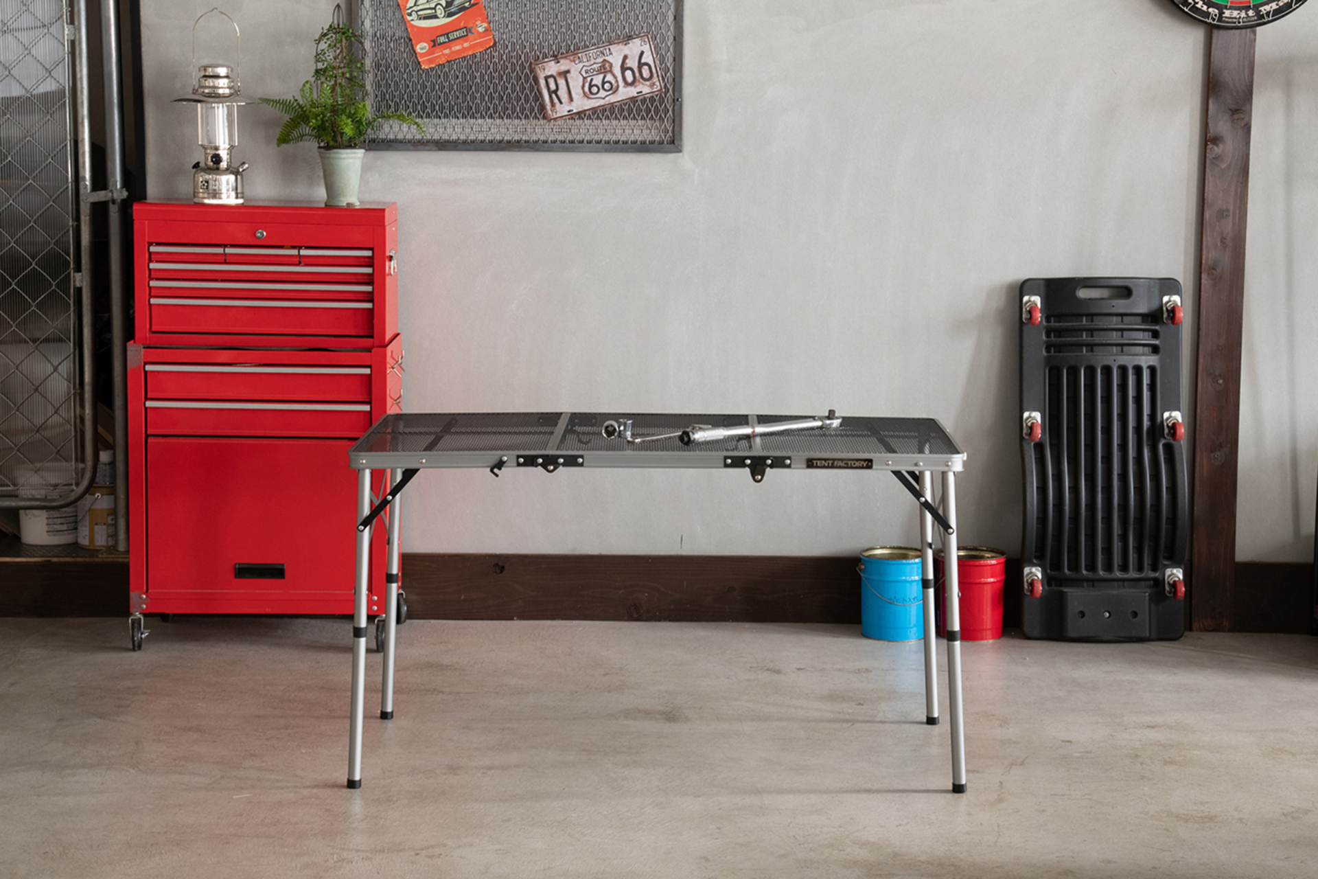 天板がメッシュ仕様の折りたたみ式(フォールディング)テーブル。