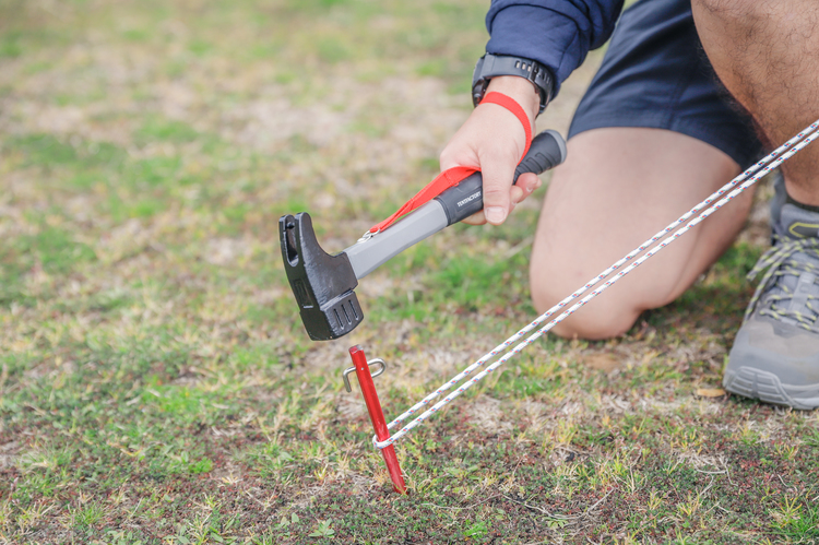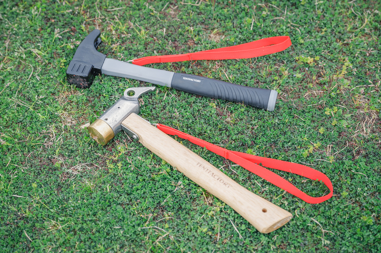 パワフルにしっかりとペグを打ち込めるアウトドア用ハンマーフレームは曲がることがないナイロン素材 -