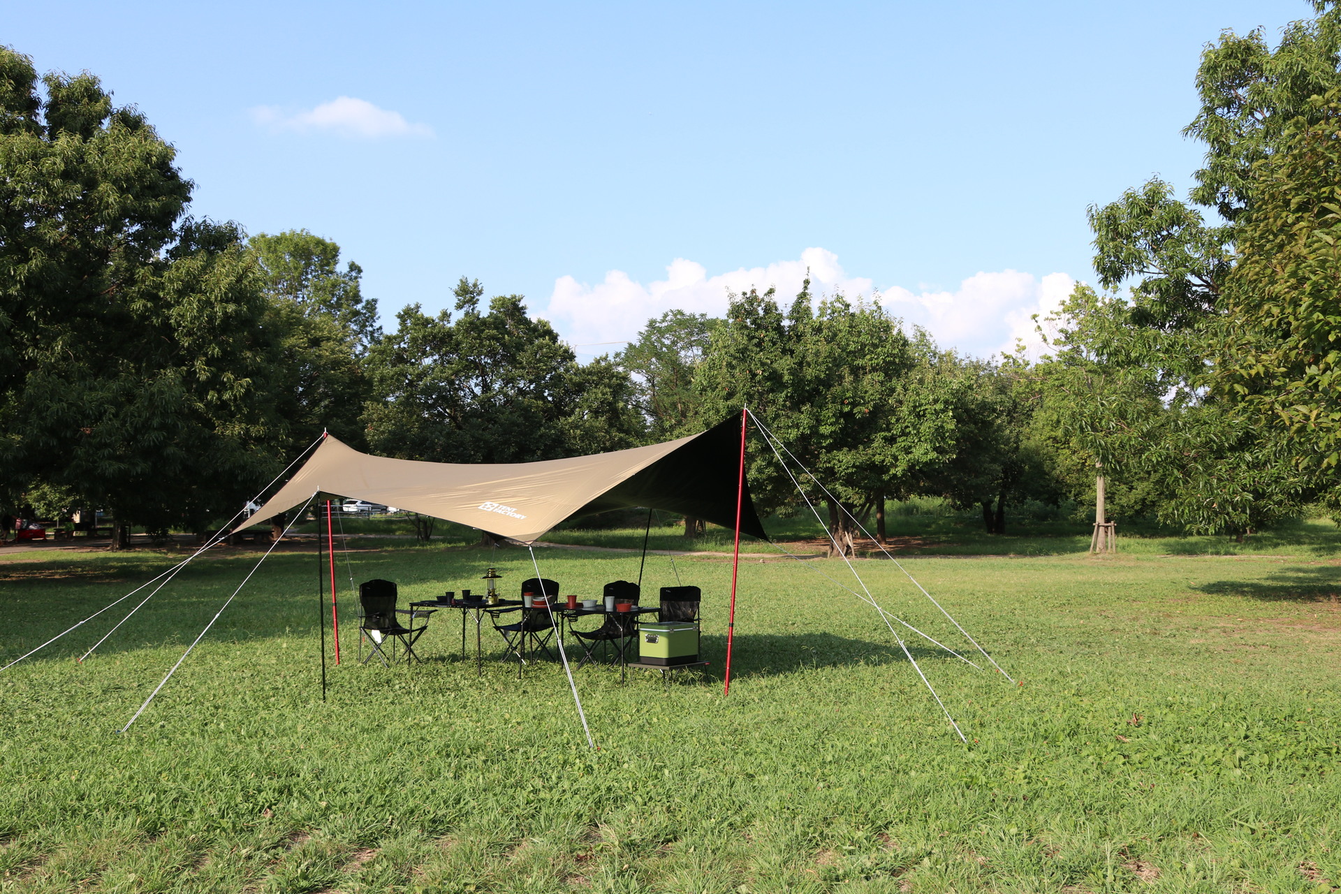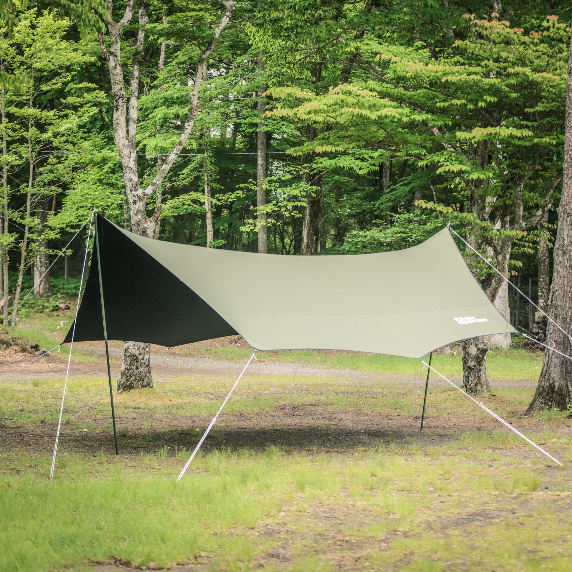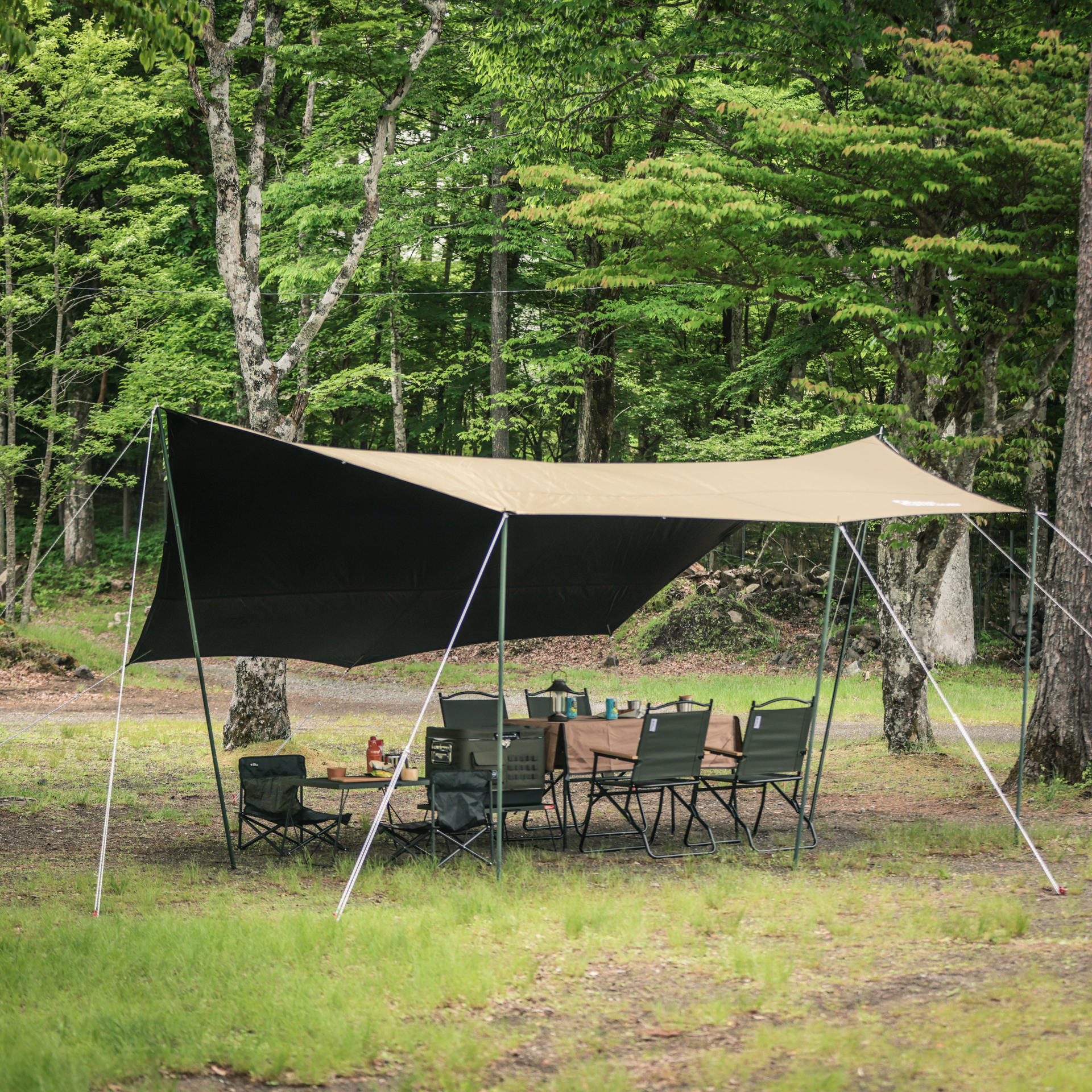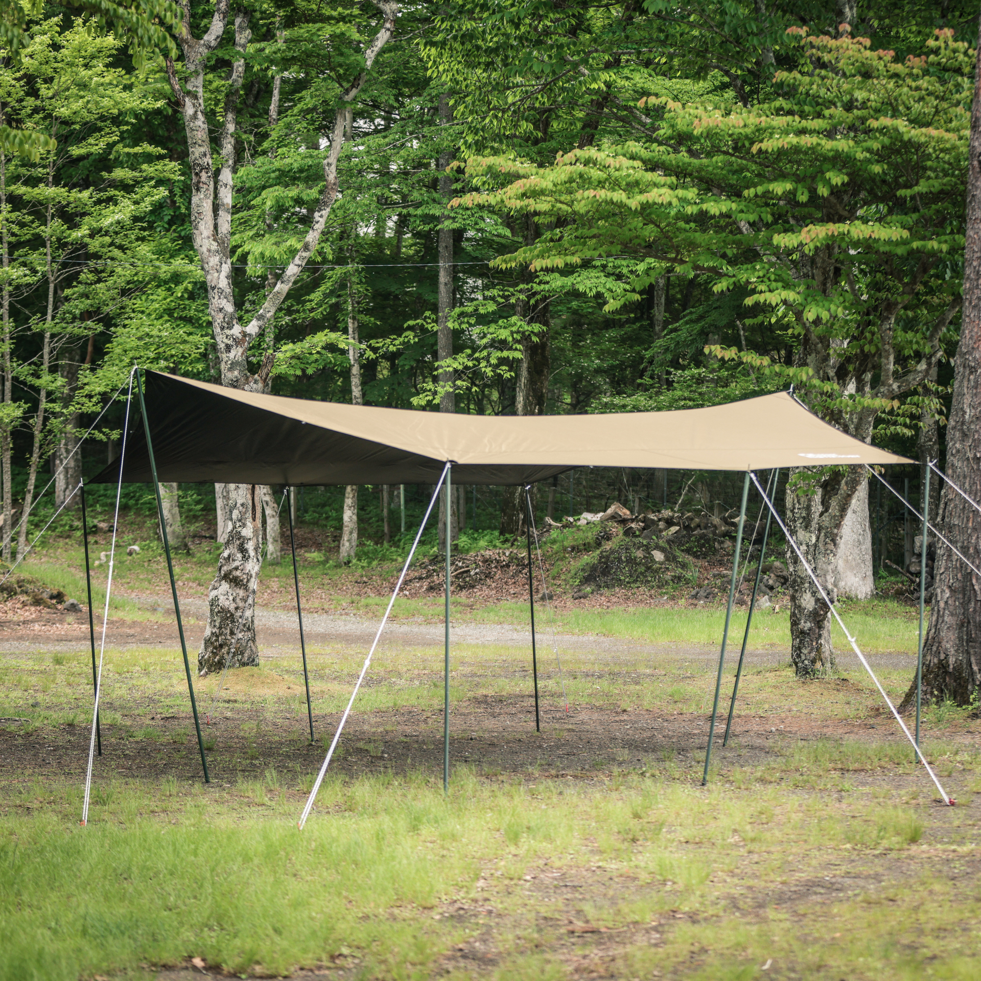 - ■一般的なポリエステル素材のタープは熱を持ちやすく、特に夏場はタープ本体が高熱となる場合があります。