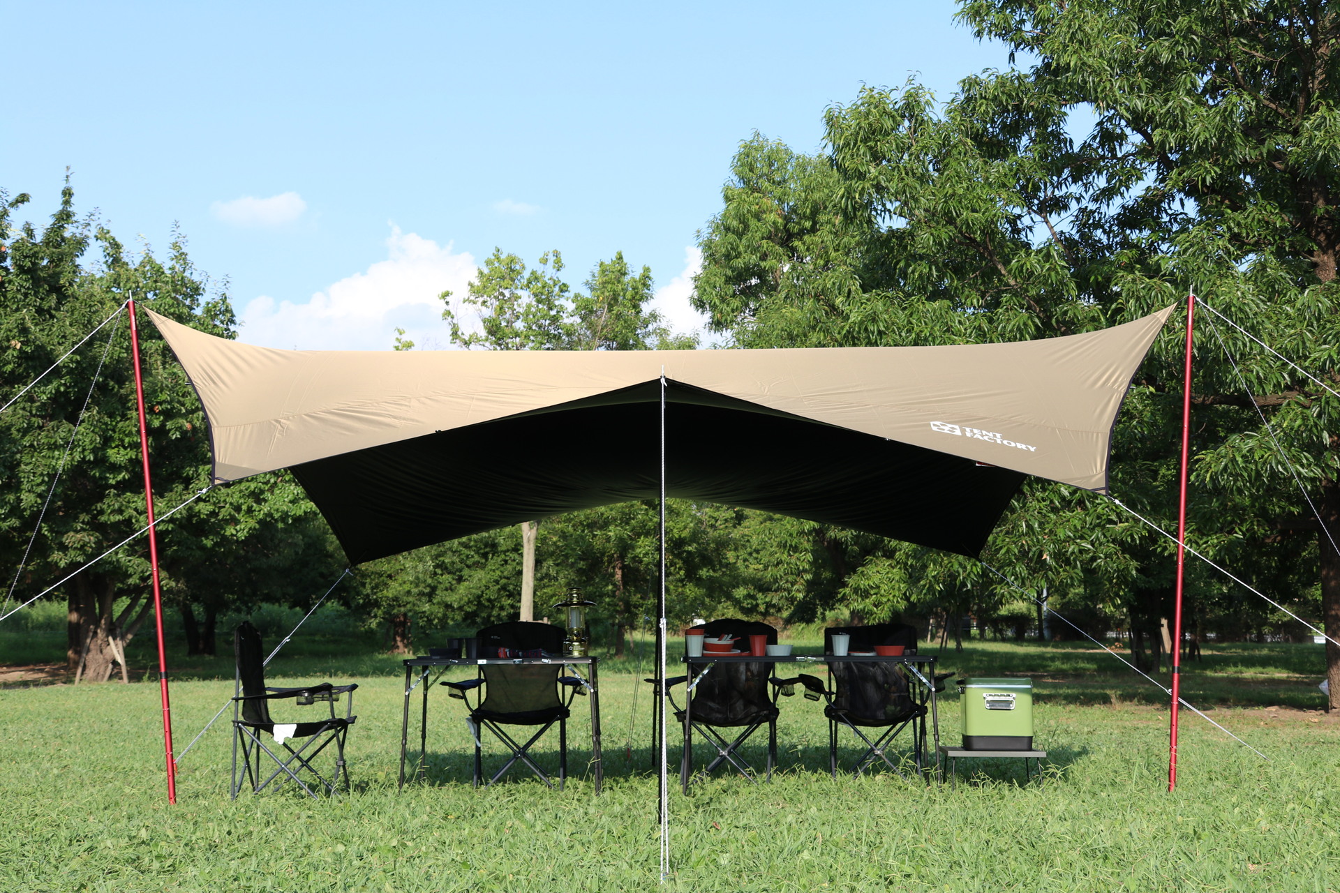 W500の大型サイズタープ下にゆとりあるレイアウトができます -