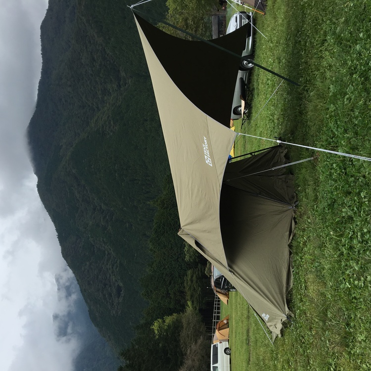 - ■風が強い時期は、無理に固定を強くすると、逆にテント下からの上昇気流による負荷から、生地(縫製箇所)が破損する場合があります。こういいた場合は逆に風抜けをよくするか、速やかに撤収してください
