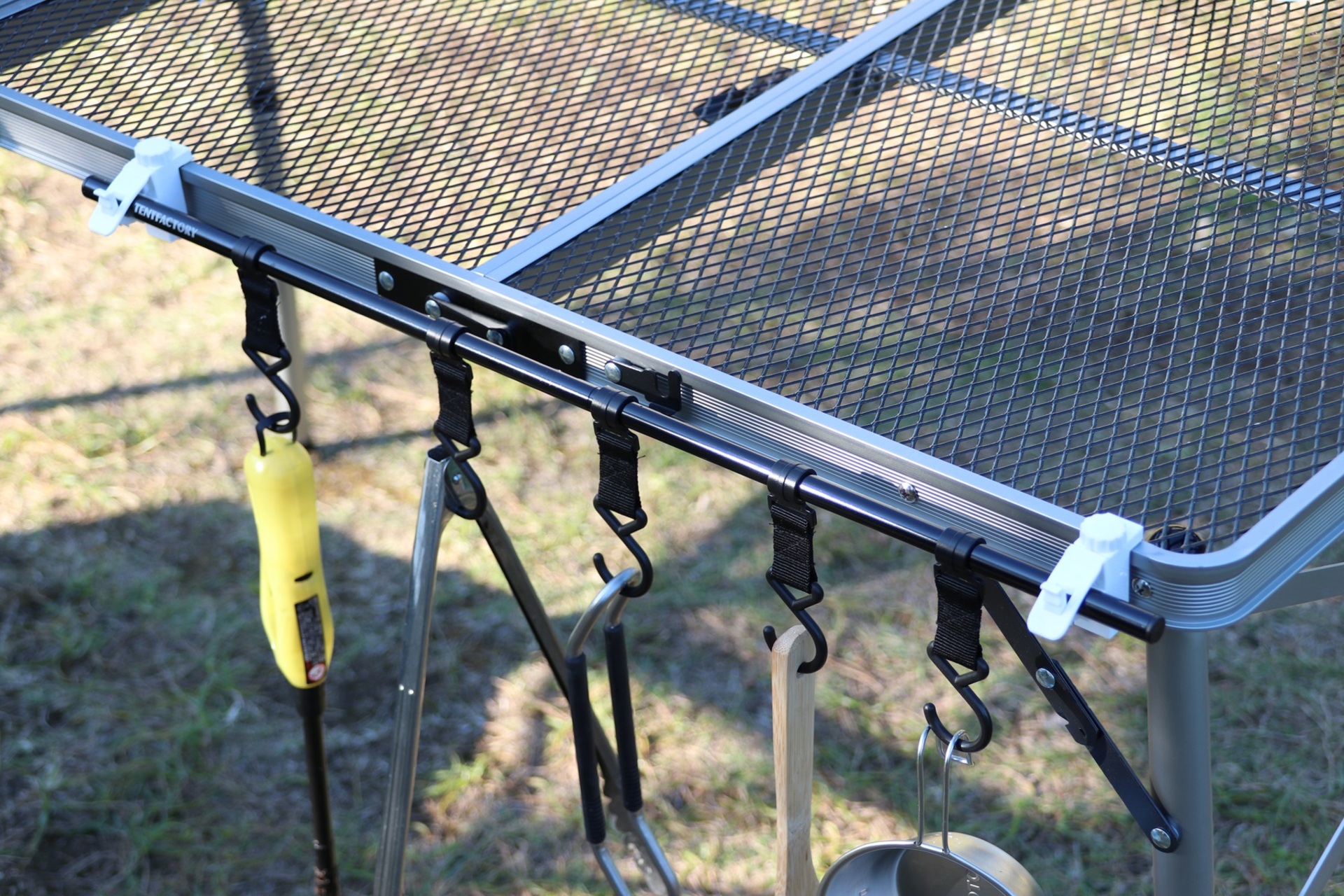 - ■テーブルの側面に簡単に取り付けられ、食器・タオル等を掛けられる便利なハンガー。