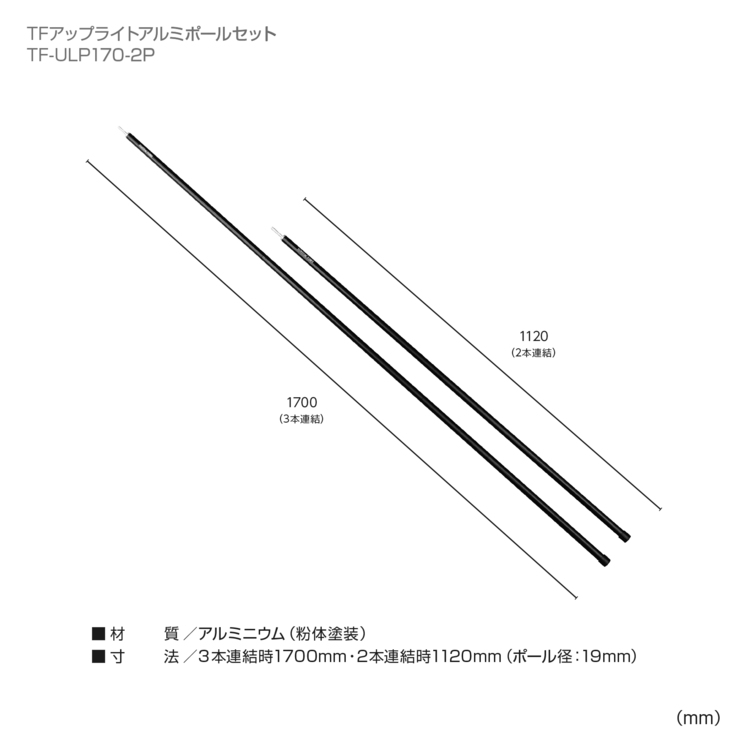 - ■寸法:3本連結時1700mm・2本連結時1120mm(ポール径:19)