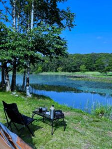普段なら朝食を作ろうとバーナーに火をつけるのですが、今日はそんな気にもなれません。ただただ、コーヒーだけを淹れて湖畔に座る。この静寂と、凛とした空気、風も雑音もない時間に、ただ身を委ねてみる――それが、このキャンプの真骨頂かもしれません。
